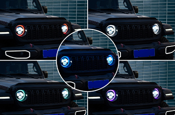 Using the app to connect the headlights, you can set the daytime running light colour of one headlight individually, or create a group control to set the daytime running light colour of a pair of headlights at the same time.